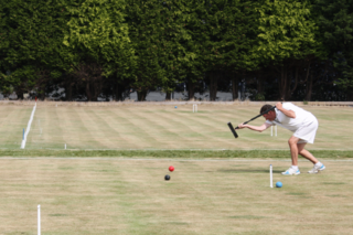 John attempted a lengthy pass-roll peg-out, which succeeded in pegging out the croqueted ball, but left his striker’s ball well short of its target (namely Geoff’s balls); he then had to survive a considerable period of playing one ball v two balls, but eventually managed to peg out his remaining ball to win 26-15.