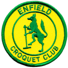 As you may determine our 'enfield' is based more upon those used as heraldic symbols rather than the Borough's official logo. And rather than deploying the borough's red enfield ours is green on a yellow background because it seemed altogether more appropriate for a Croquet Club and also because we really didn't want any Club members associating our Club logo with their community charge.