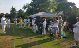Five Enfield players - David Frost (-1), Andrew Fall (4), Thomas Halliday (8), David Warren (12), and Robert Sheppard (14) - congregated under the gazebo expecting scattered showers, before the rain descended in sometimes monsoon-like conditions. The all-play-all format went ahead nonetheless, with each player glad of a bye round in which they could sit down and drip dry.