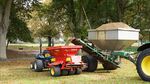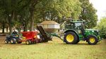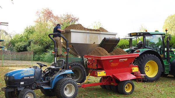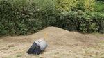 The contractors seeded all three lawns this morning with 100kg of seed, specially chosen because it germinates at low temperatures, and then top dressed them with 20 tons of topsoil. Meanwhile, Fiona and Andrew cleared leaves off the lawns and continued moving the scarification spoil heap off the meadow area and into the shrubberies.